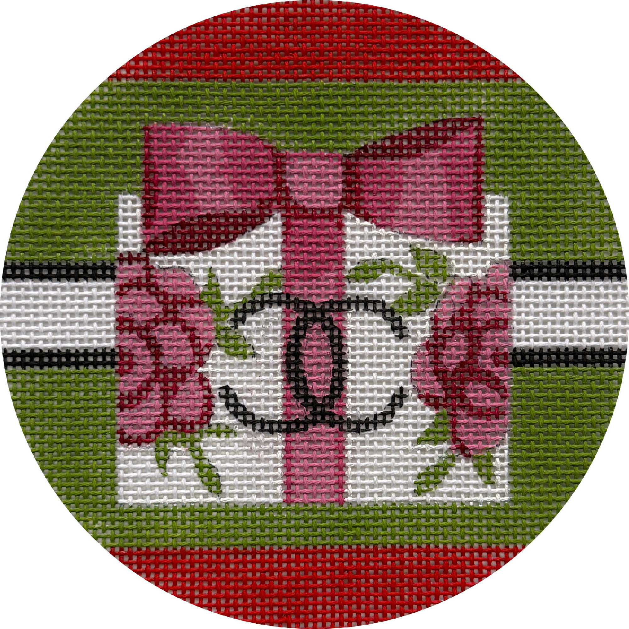 Item# X692, Xmas Gift Dior hand-painted Christmas ornament needlepoint design on 18 mesh cotton canvas.